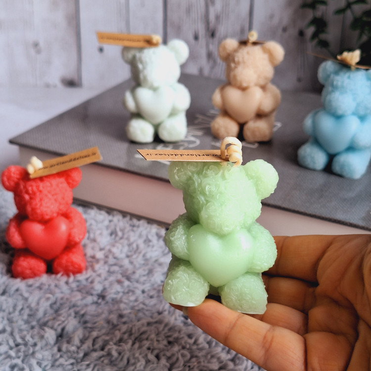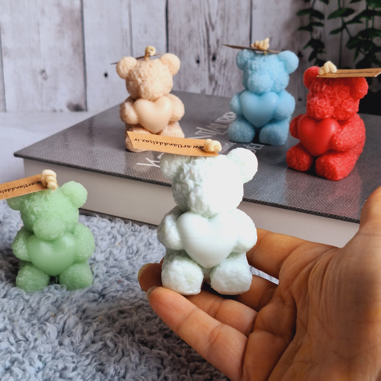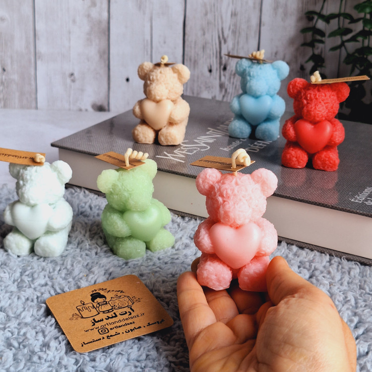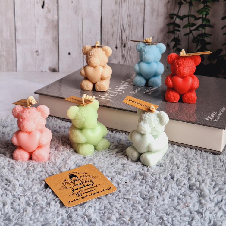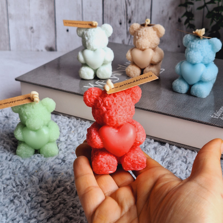 شمع عروسکی خرس رز قلبی