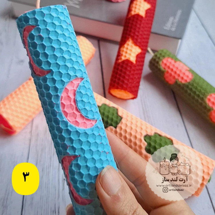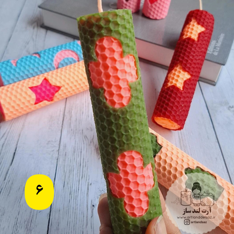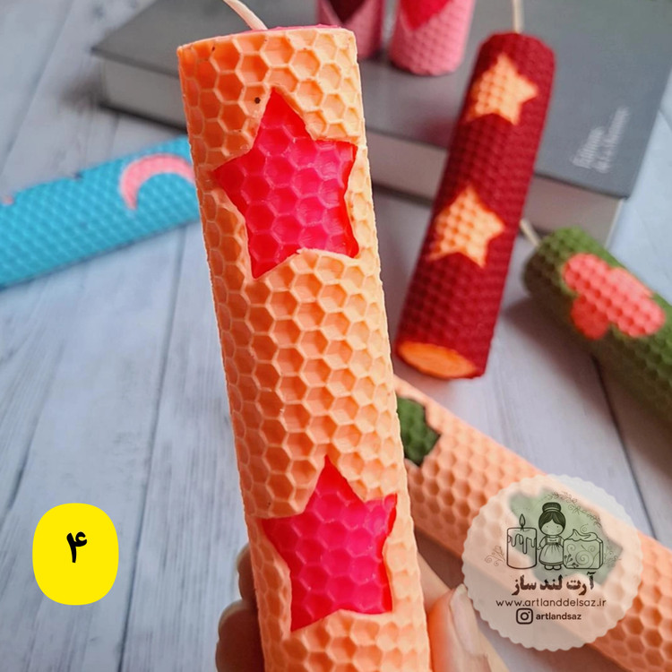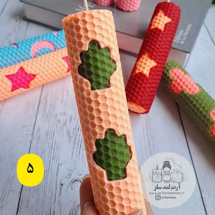 شمع موم عسلی طرحدار