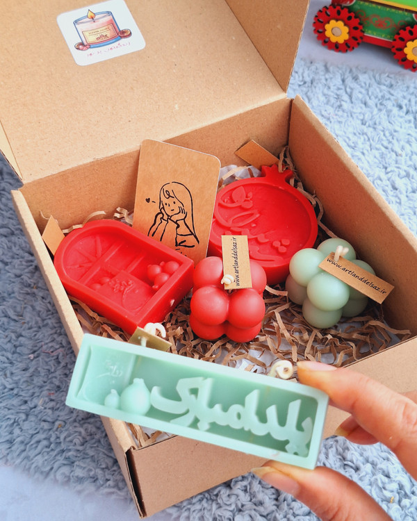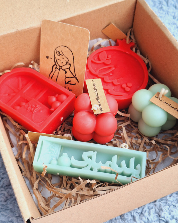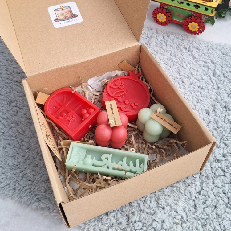 مجموعه ای از شمع های یلدایی با رنگ های مناسب این مناسبت